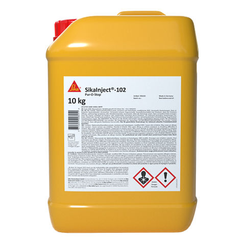 SikaInject®-102 ist ein einkomponentiges, wasserreaktives Injektionsharz auf PU-Basis. Es härtet aus und bildet einen geschlossenen, dichten, aber leicht flexiblen Schaum.