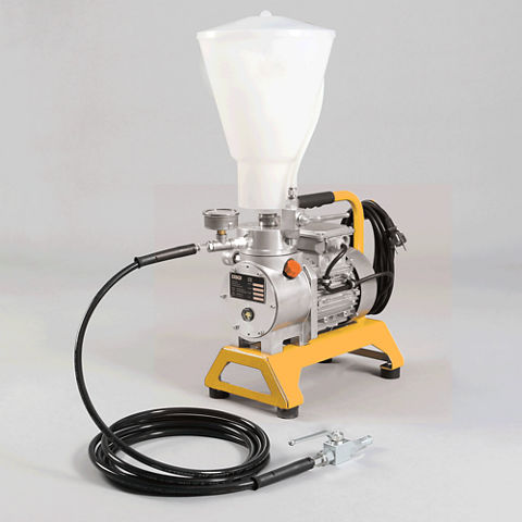 SikaInject® 1C Power-303 ist eine kompakte, leistungsstarke und elektrisch betriebene Membranpumpe zur Verarbeitung von einkomponentigen Injektionsstoffen. Die Besonderheit der Membranpumpe ist die große Membranfläche und das groß dimensionierte Ansaugventil, welches das Ansaugen hoch viskoser Materialien erleichtert.