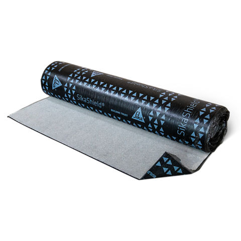 SikaShield® E-KV-5K-wf (Dicke 5,0 mm) ist eine durchwurzelungsfeste Elastomerbitumen-Bahn mit einer Kunststoffvlies-Einlage. Die Oberseite ist mit Quarzsand feinbestreut und die Unterseite ist mit einer Polyethylen-Schnellschweißfolie kaschiert.