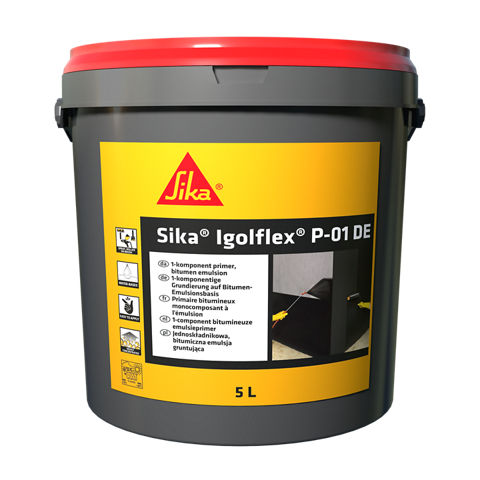 Sika® Igolflex® P-01 DE ist ein lösemittelfreier, verdünnbarer, sehr schnell trocknender Bitumenemulsions-Voranstrich als Grundierung vor kunststoffmodifizierten Bitumendickbeschichtungen (KMB/PMBC).