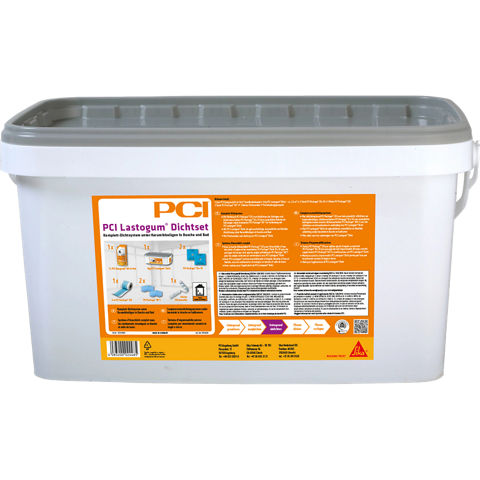 Im Roll-, Streich- oder Spachtelverfahren verarbeitbare, lösemittelfreie, flüssige Flächenabdichtung inkl. dazugehöriger Grundierung und Dichtmanschetten/Dichtband für Feucht- und Nassräume
